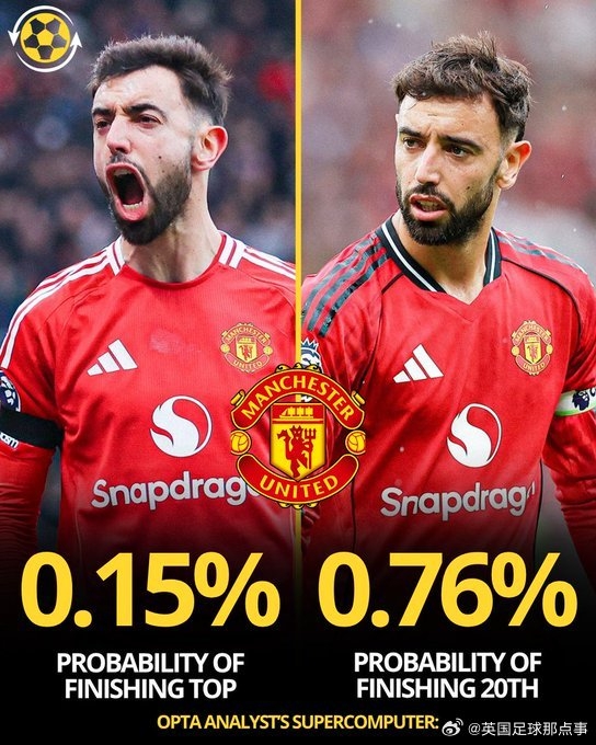 2025-10-10 00:40:12Opta超算预测,本赛季曼联英超垫底概率0.76%,大于夺冠概率0.15%